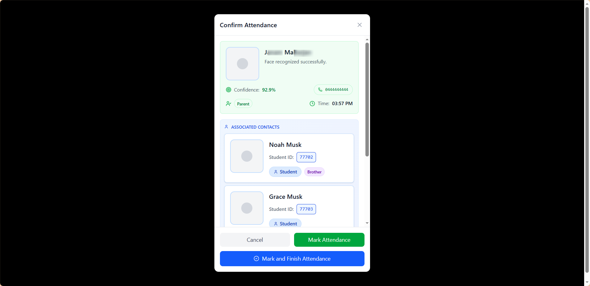 - ✔ These are the correct children. With one click on Mark Attendance, the record is securely stored. This removes guesswork, strengthens security, and gives parents peace of mind.