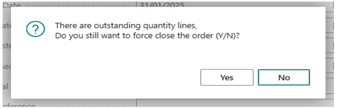 Once accepted (YES), the un-invoiced Purchase Order with “Force Closed” status will be moved to the new page “Force Closed Orders”.