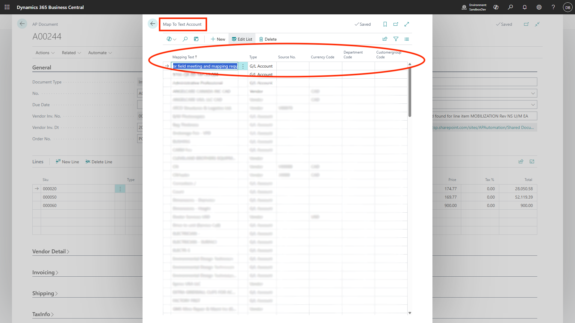 This also helps in defining same vendor name with different currency codes, so for USD if there is different vendor code for same vendor and different vendor code for CAD currency then the map text to account feature helps in defining such vendor names with different vendor codes with different currency codes.