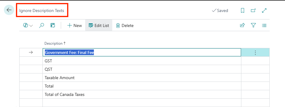 - Ignore Description List Feature: This feature allows the user to prevent unnecessary or irrelevant information from the invoice document (e.g., promotional text, boilerplate terms) from being inserted as line items into the Business Central Purchase Invoice, ensuring cleaner transaction data.