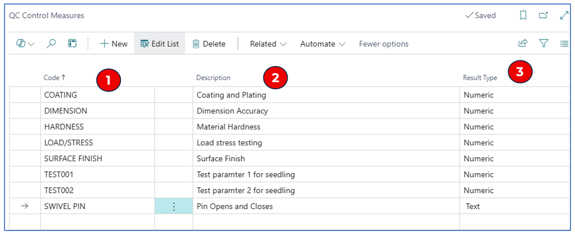 Navigate to QC Control Measures to view the list of defined quality measures, for example: