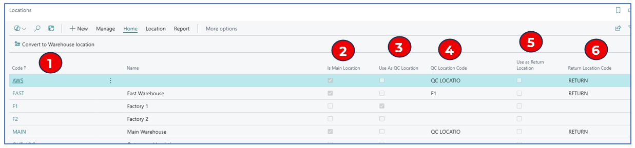 Is Main Location: This flag indicates that the location code is a main warehouse location.