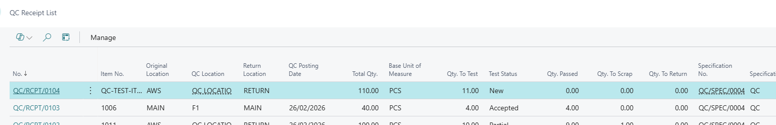 This Quality Control Management app is an extension to standard Business Central addressing the need for a Quality Control module to record QC measures in Business Central. The app complements current Purchasing/Warehouse Receipting processes, allowing users to nominate industry-standard quality specifications and measures for recording quality inspection outcomes.