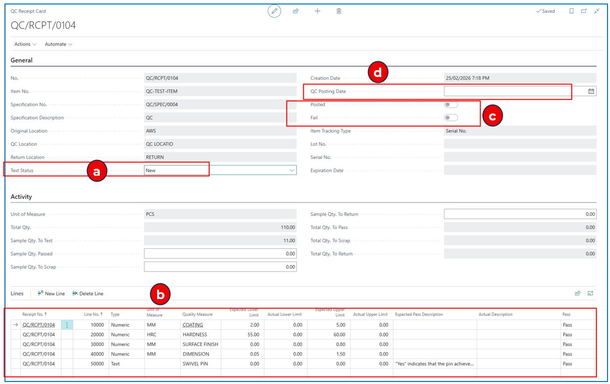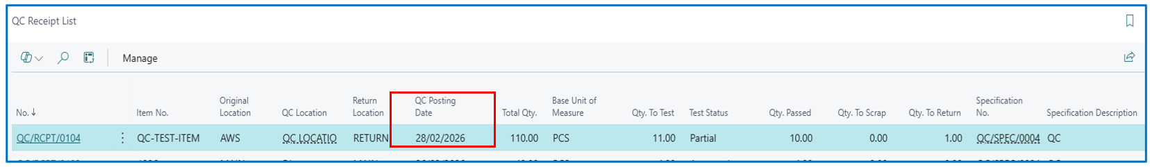 d) QC Posting Date: This posting date must be selected to post the QC Receipt.