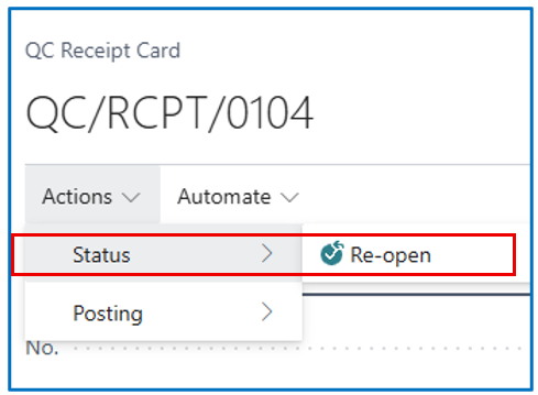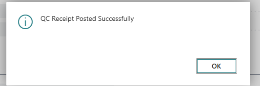 Posted QC Receipt: This is used to record the posted item journal after recording the QC outcome.