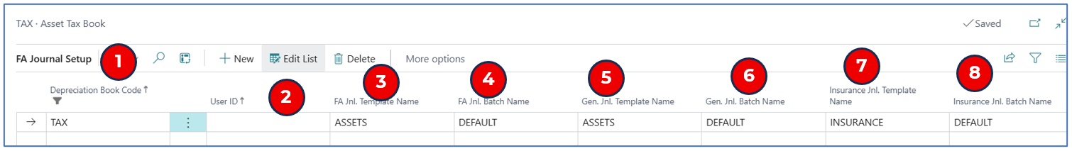 FA Jnl. Template Name — This is the template for Fixed Asset Journals.