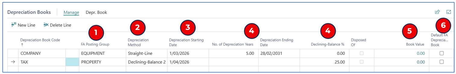 If the asset has more than 1 depreciation book, these are assigned in the Depreciation Books tab on the Asset Card.