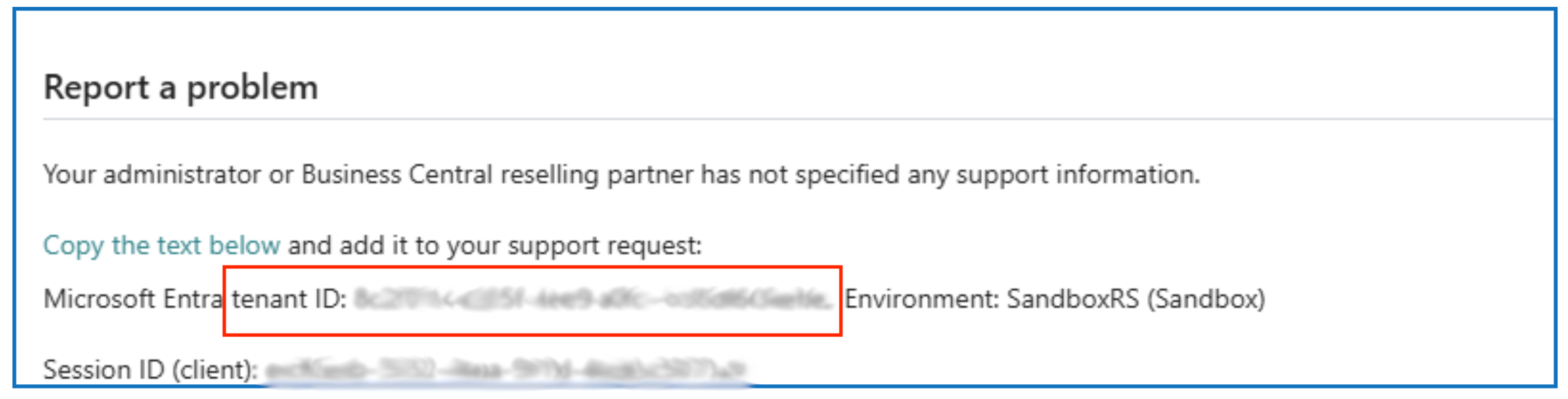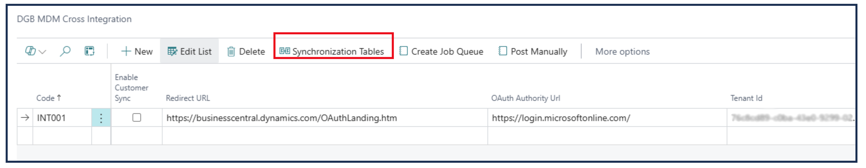 Tenant ID — Obtain this from the Master company environment.