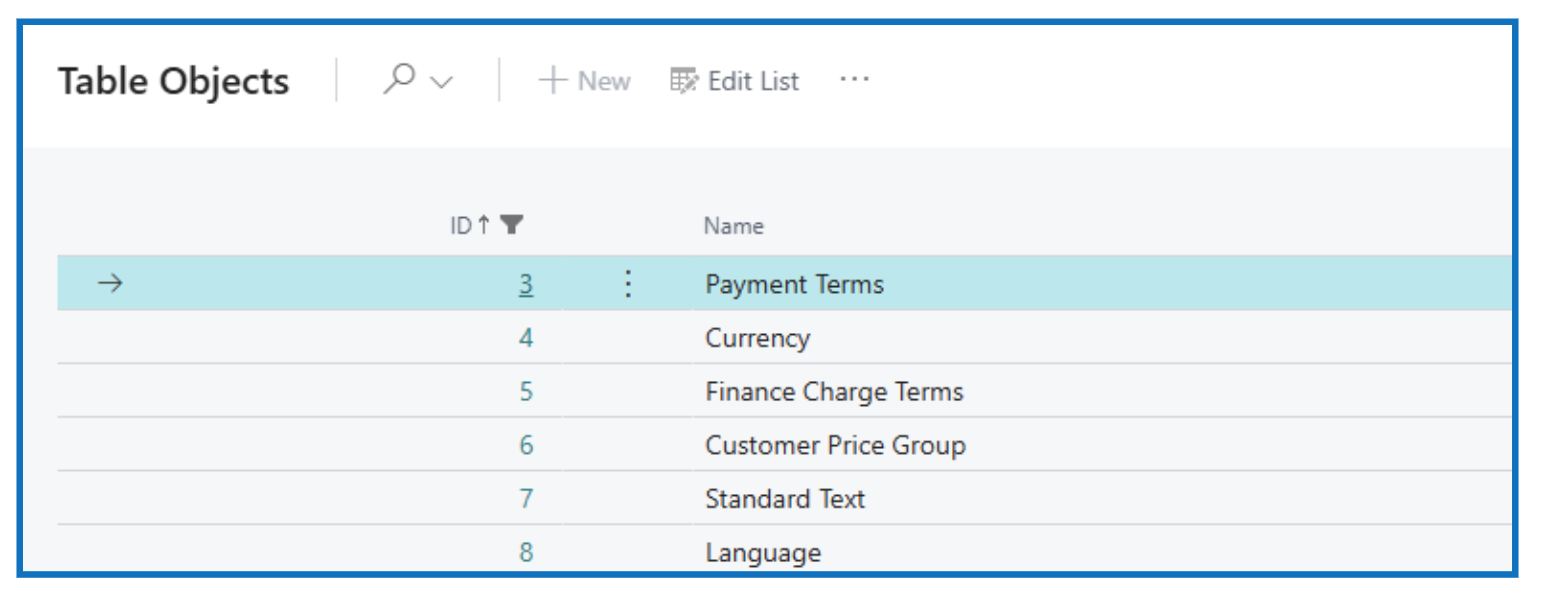 Click on the Table field to open the list of table objects in the current company to map with the MAIN company.