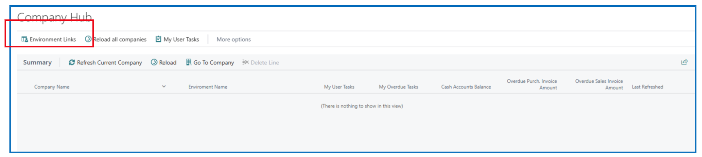 Once the environment link is established, click on Reload to display all the companies in the environment.