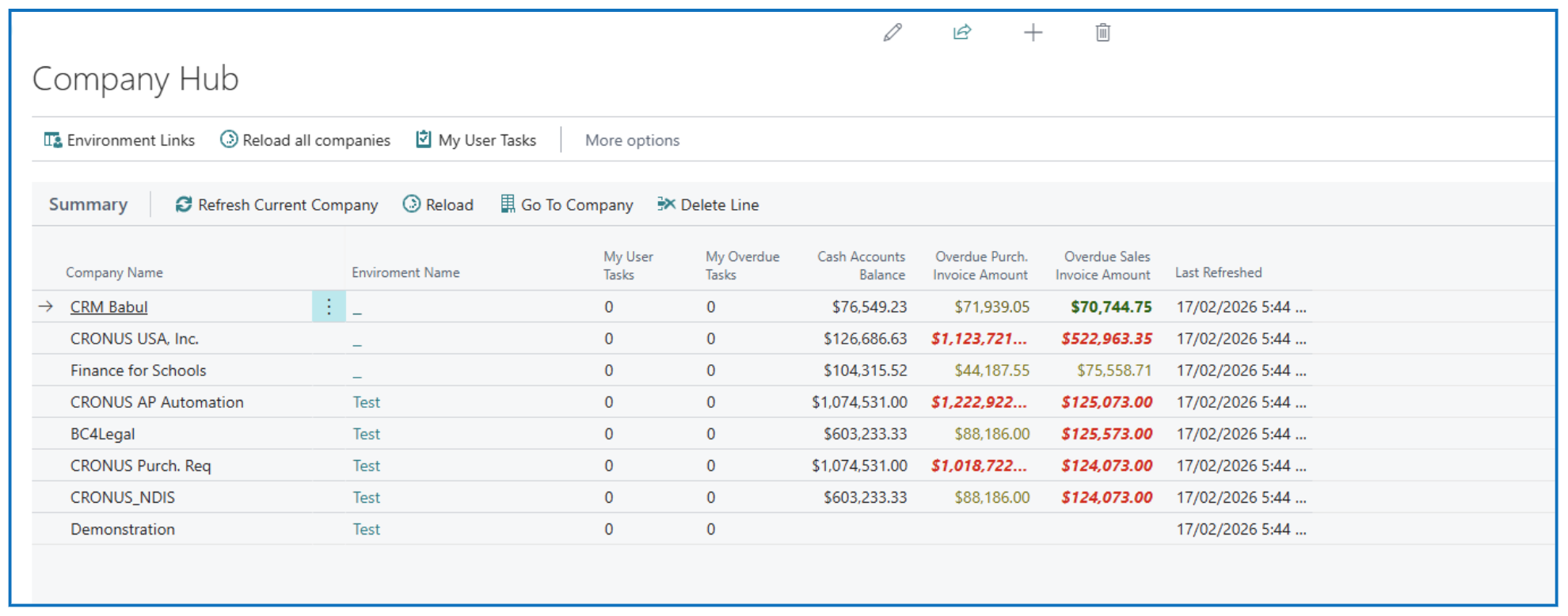 Business Central provides an environment where several business entities can exist, with each entity having its independent financial records for audit and tax purposes. Each company can have its own Chart of Accounts and home currency, and cross-company transactions are automatically generated when these companies are defined as Intercompany Partners and accounts are mapped.
