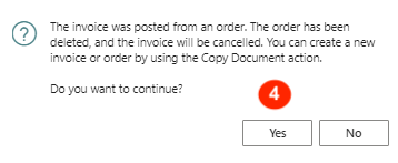 Continue with Yes to auto-create the offsetting credit memo and cancelling the invoice.