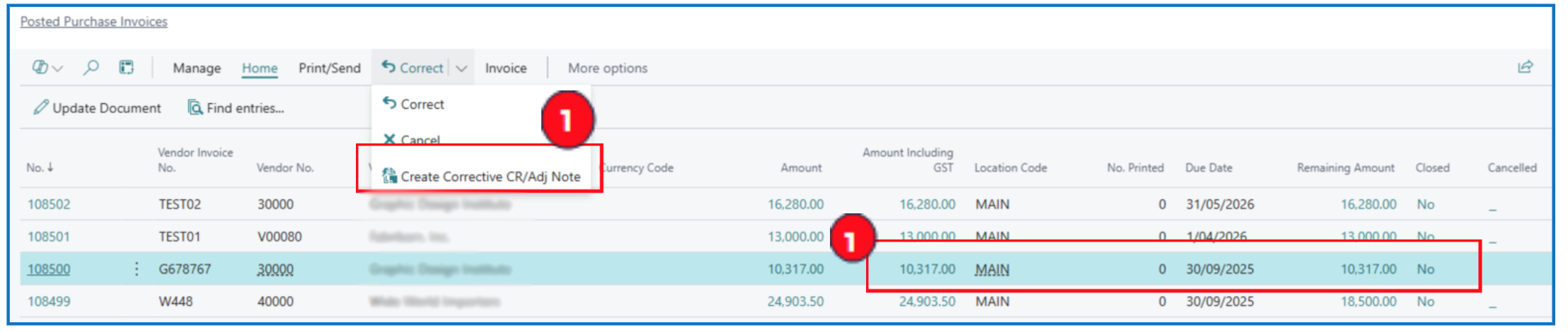 Navigate to **Posted Purchase Invoices” list page.