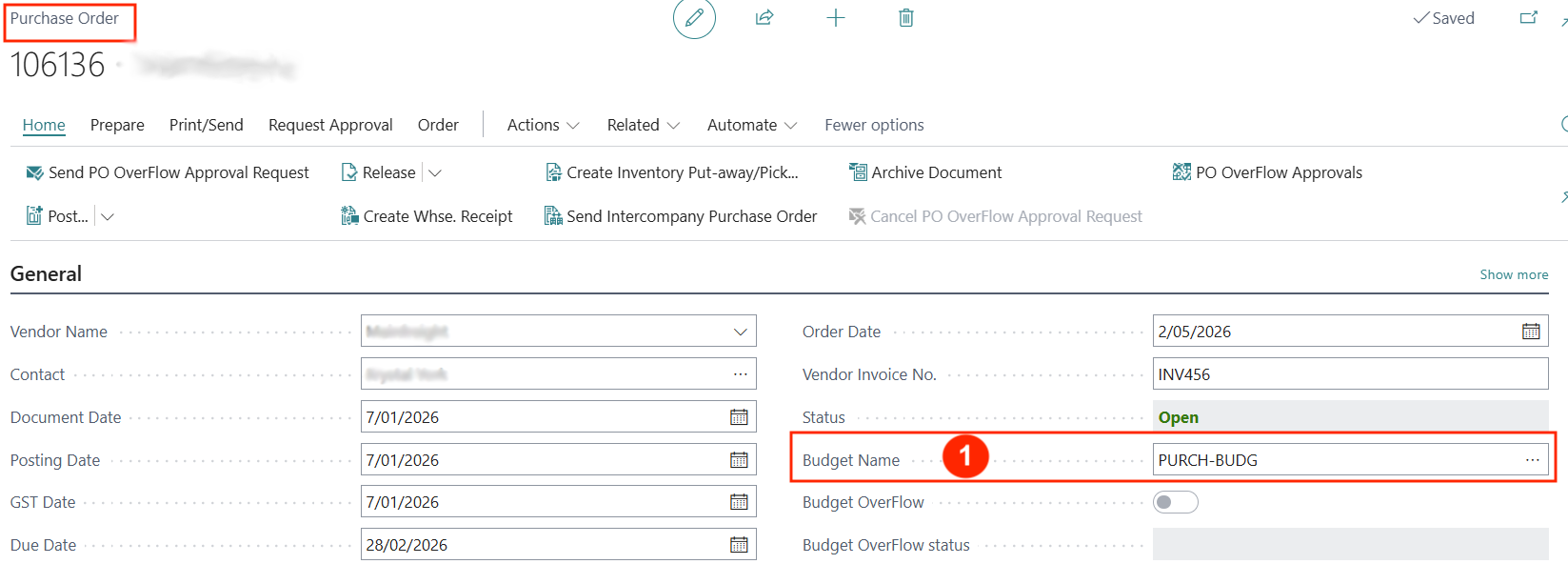 Purchasing GL Budget Control in Dynamics 365 Business Central