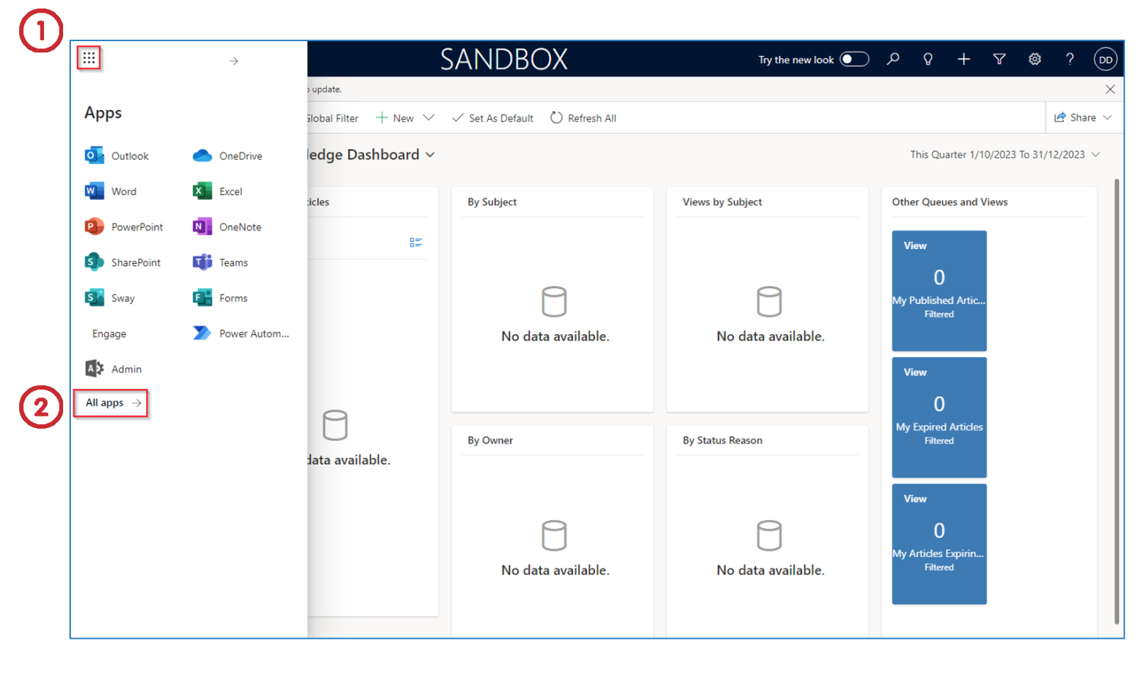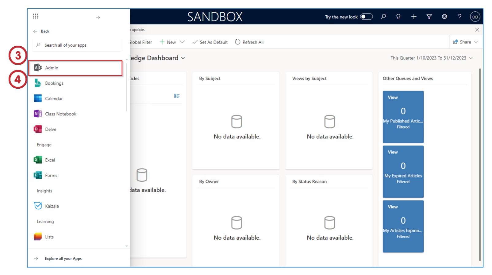 Click on the Admin app to launch the Admin Center.