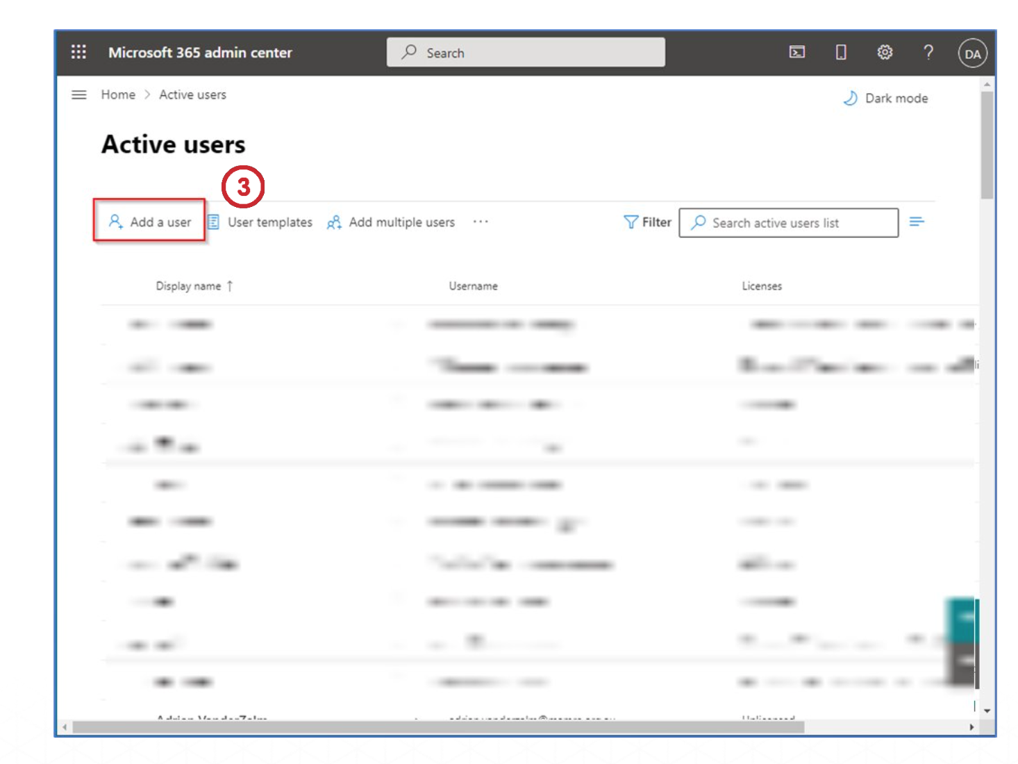 We will now create a new user and assign a license to the user.