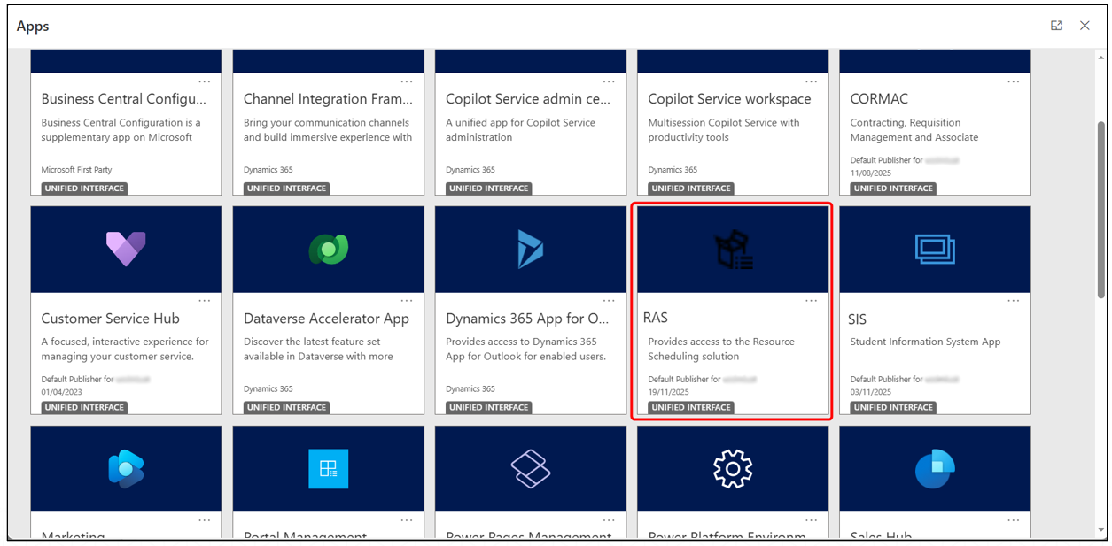 - Select the RAS app from the list of available applications.
