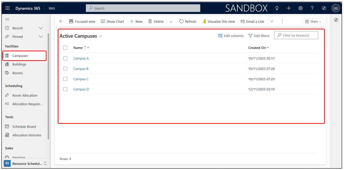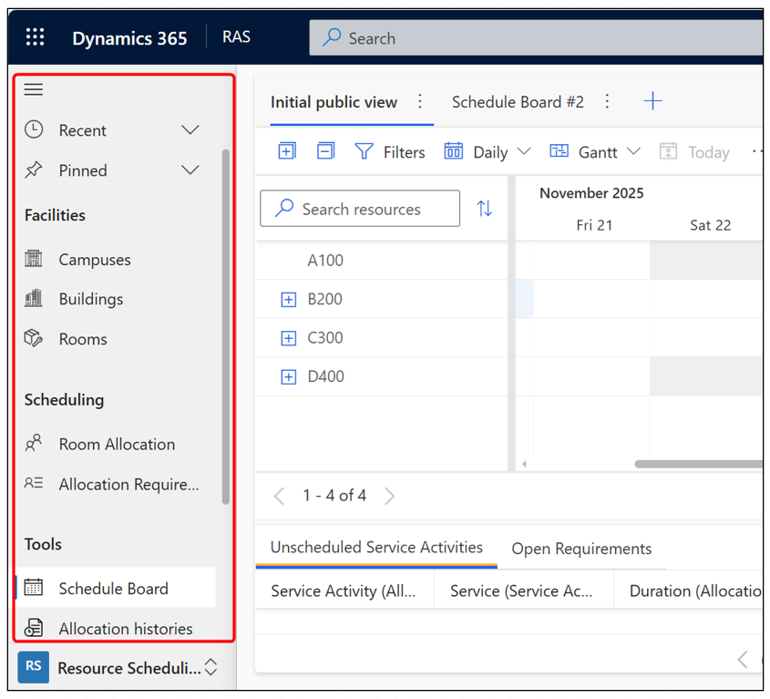The Room Allocation System (RAS) app is a central module within Microsoft Dynamics 365 that manages all programme rooms, meeting rooms, and event venues across an organization. It ensures that allocations are accurate, conflict-free, and fully traceable. This is ideal for schools and universities to ensure proper scheduling of rooms for meetings, events, and conferences.