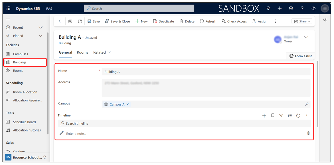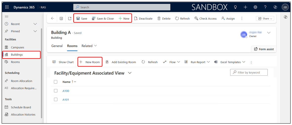- Click + New from the top command bar to create a new building.
