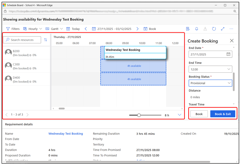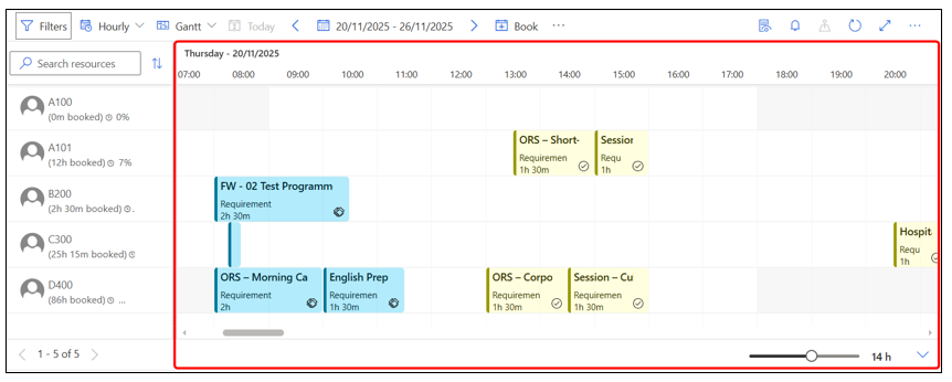- Book Button: Allows booking directly from the schedule board based on selected requirements.