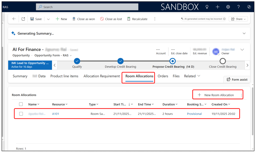 - Save the record to complete the provisional allocation.