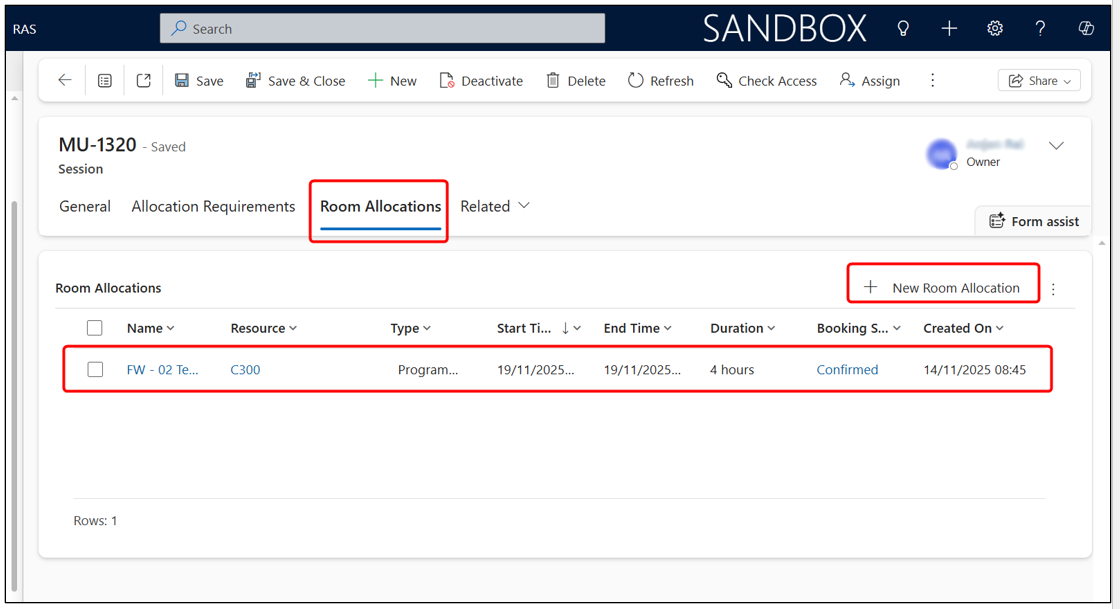 - A new allocation record will open, already linked to the session’s allocation requirement.