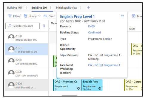 - When a room is created, the system automatically generates a corresponding Bookable Resource.