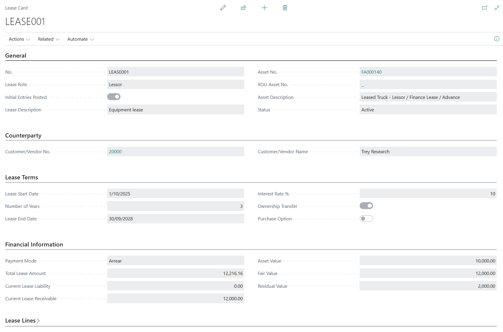 Finance Lease Management in Dynamics 365 Business Central User Guide