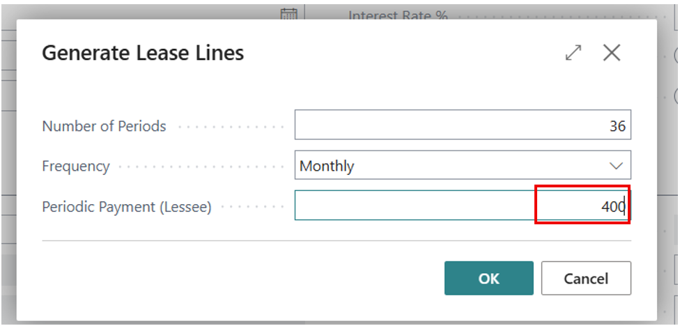• Periodic Payment (Lessee) – enter the expected monthly lease payment (on contract)