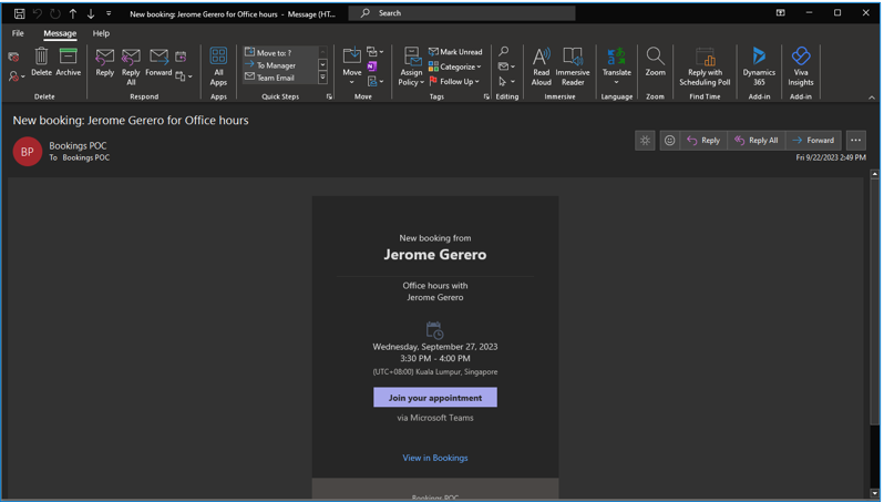 - Calendar Integration: The appointment automatically appears on their Outlook calendar, syncing across all their devices.