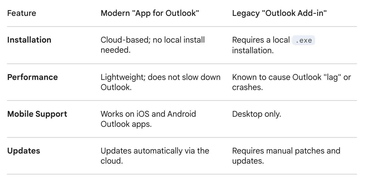 If you have used Dynamics for many years, you might remember the Dynamics 365 for Outlook. Here is how the modern App differs: