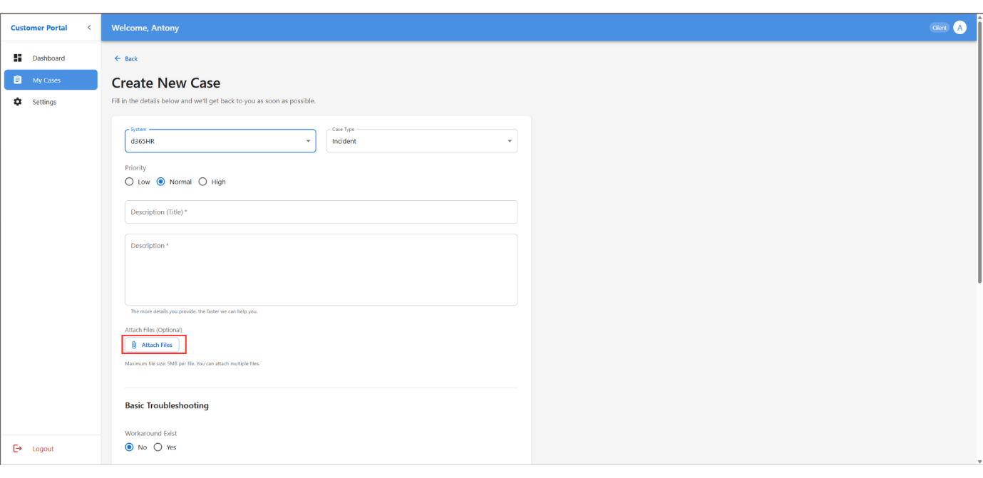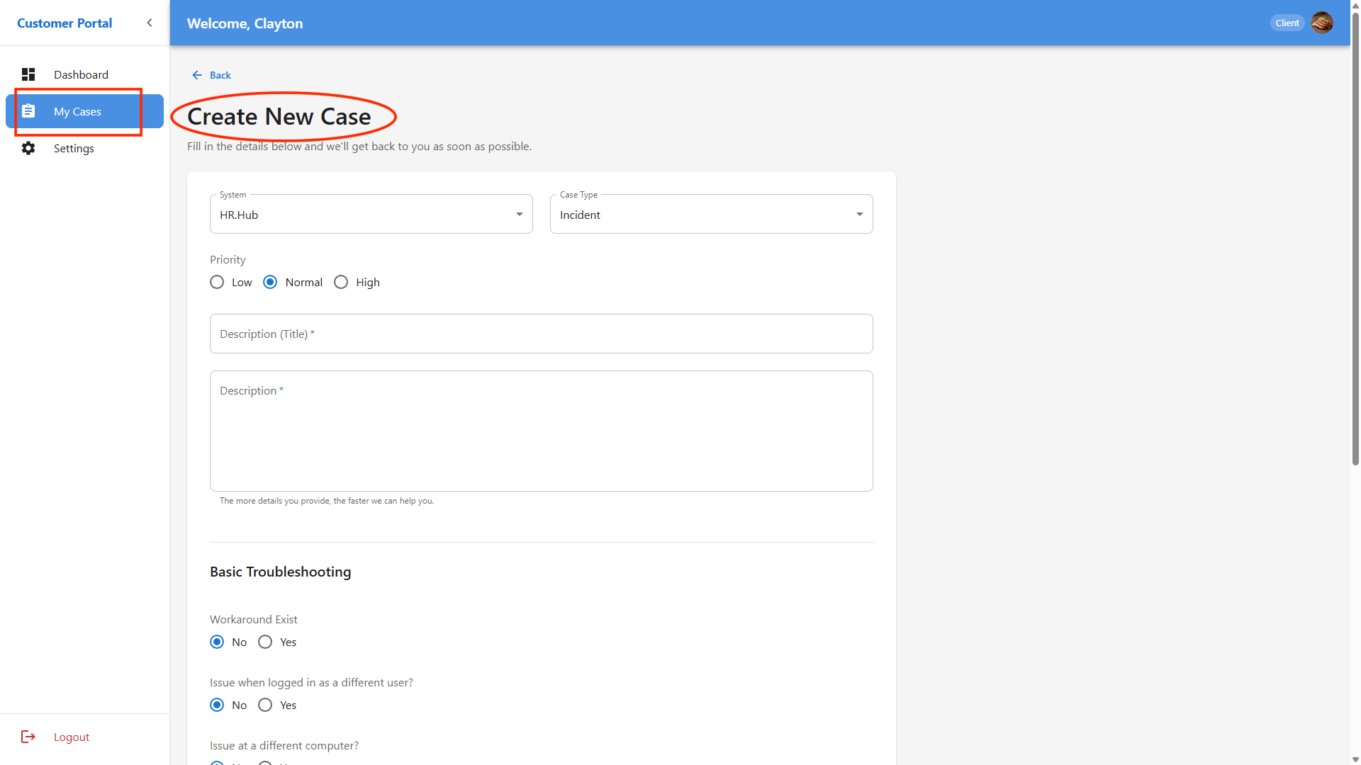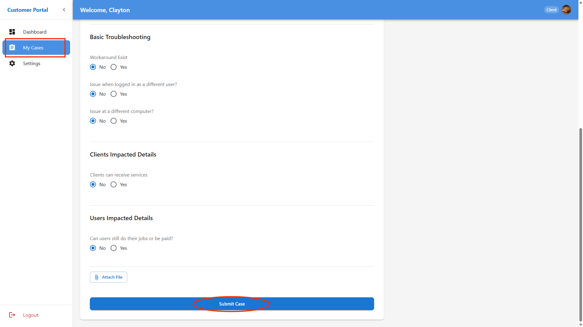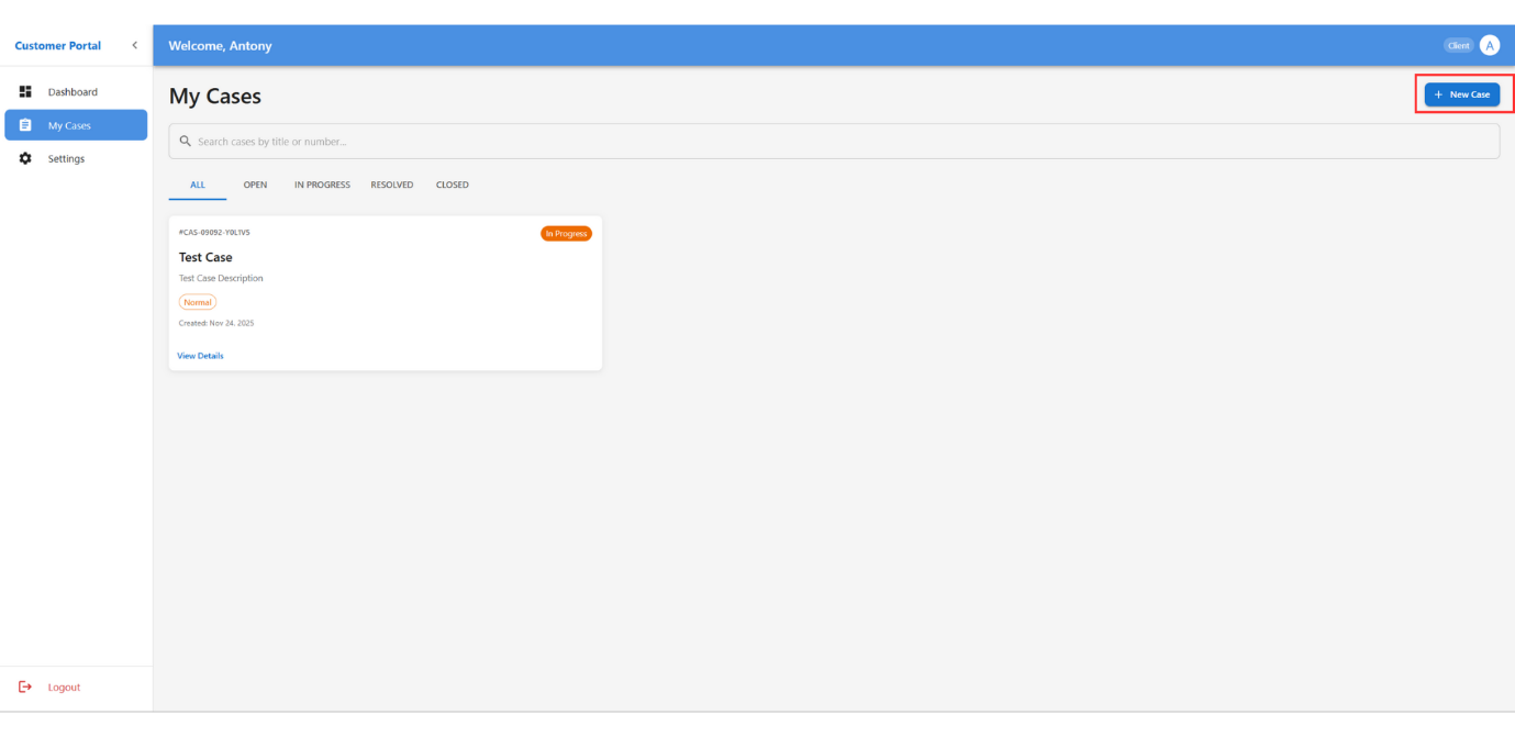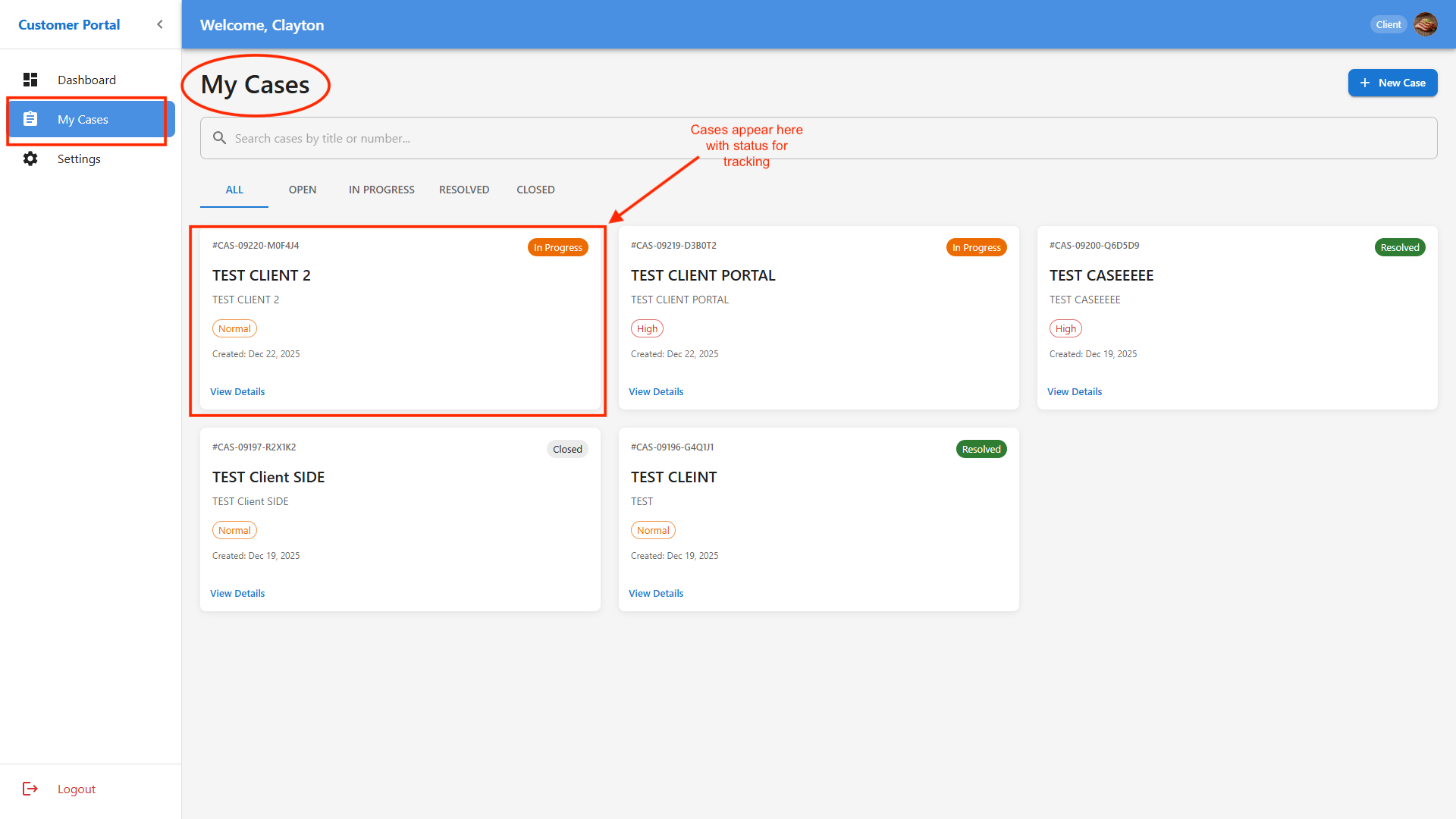 Once you have created cases, you can view and manage them through the My Cases section in your Dashboard.