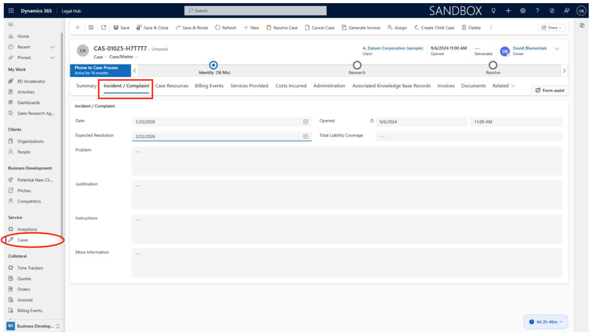 Here is how to capture and update incident or complaint details within a case or matter.