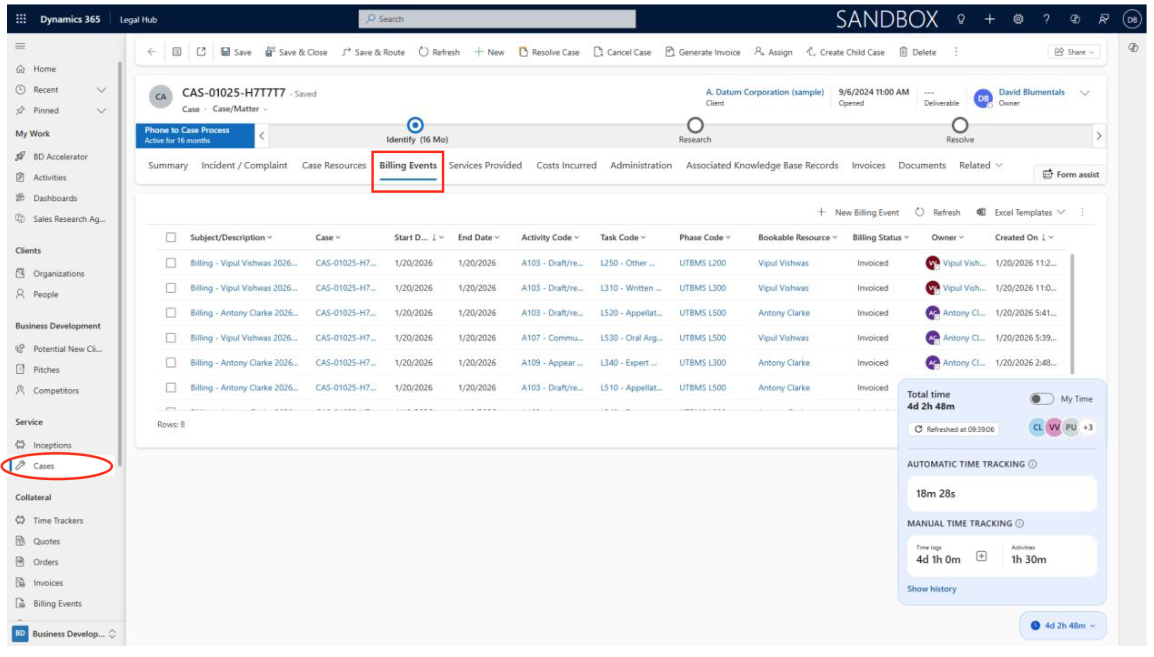 This section explains how to track time spent on cases using the Case Handling Time widget and manage billing events.