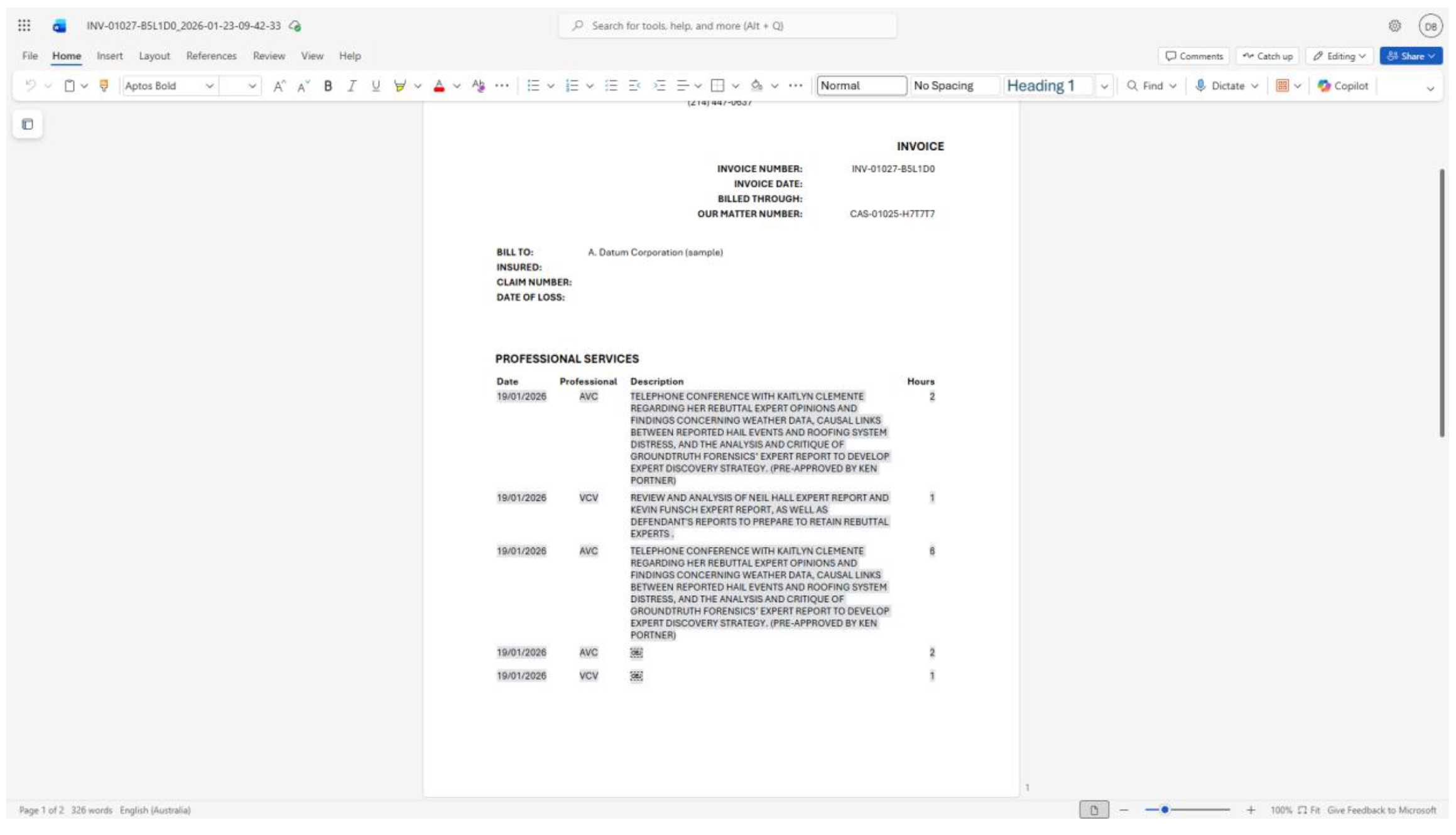 - Describe each billable activity, with date performed and assigned staff.