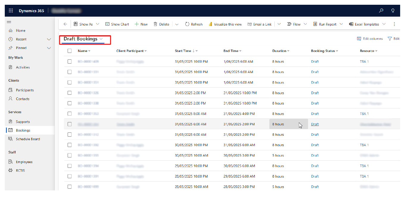 Upon successful editing of these records, they will now be scheduled for Bookings and will be available to Resources.