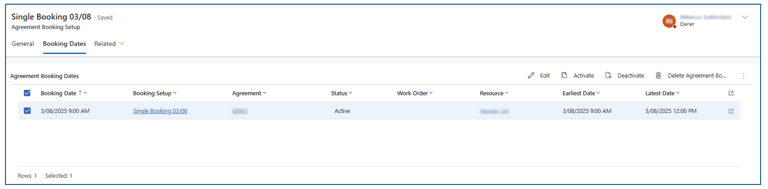 - For verification of the settings, we can cross-check the Number of Agreement Booking Records generated. In our scenario, only 1 record is generated based on the settings which meet our requirements.