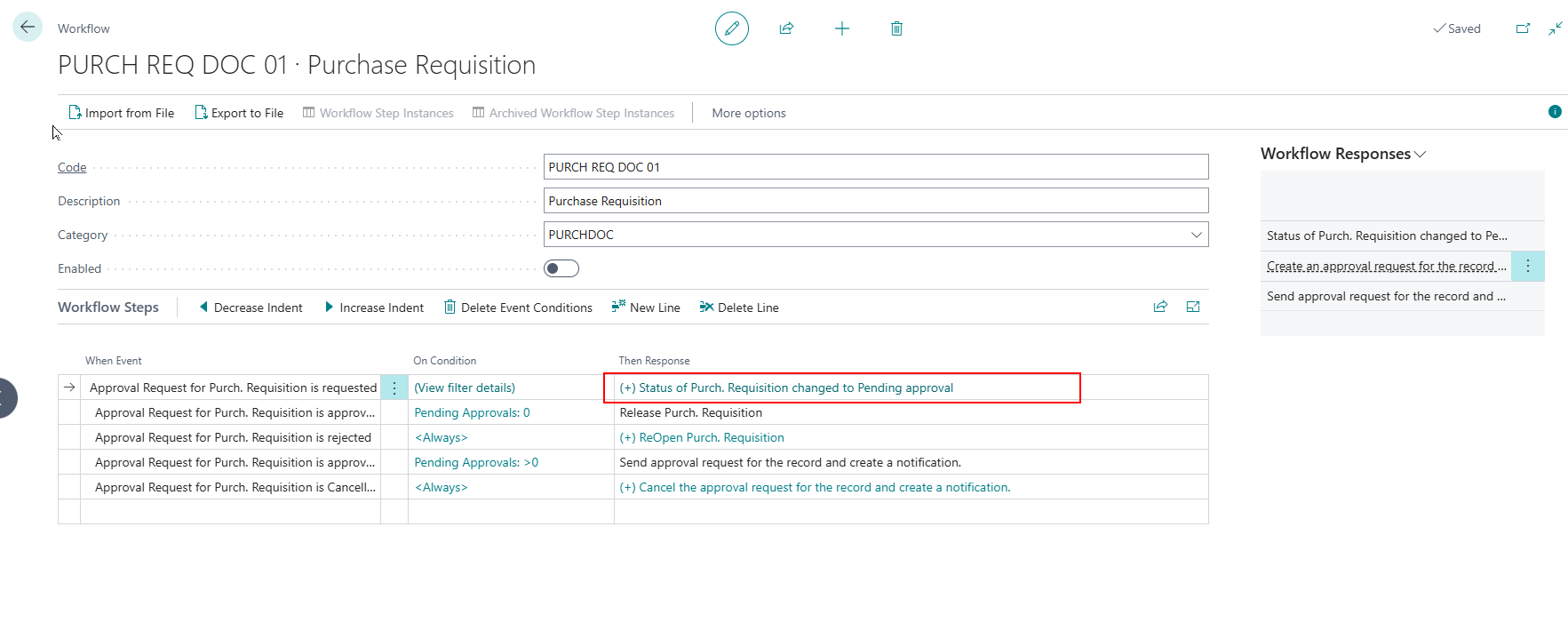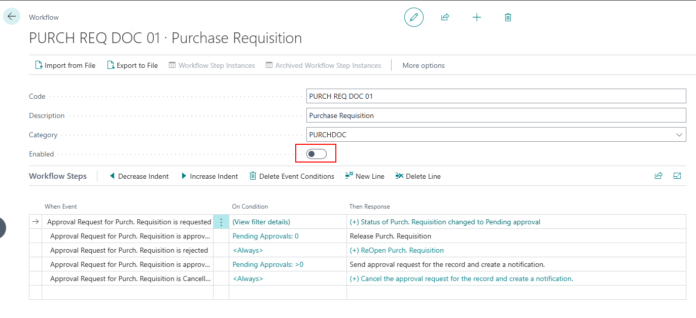 This will enable the workflow for purchase requisition and will be ready to use in production.