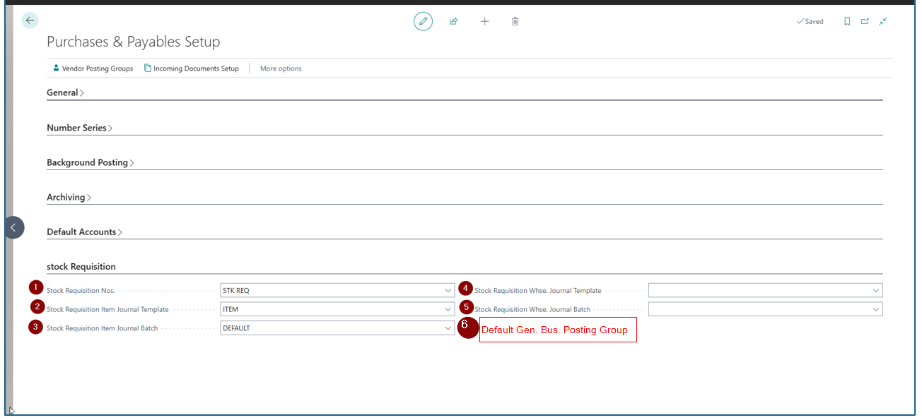 | 3 | Stock Requisition Item Journal Batch | The Item Journal batch defaulted for stock requisition transaction. |