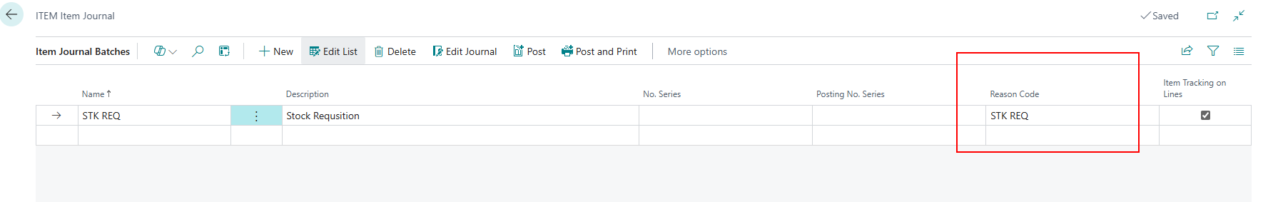 - Reason Code on Stock Requisition Item Journal Batch (defined in setup on point 1) is used for audit purposes.