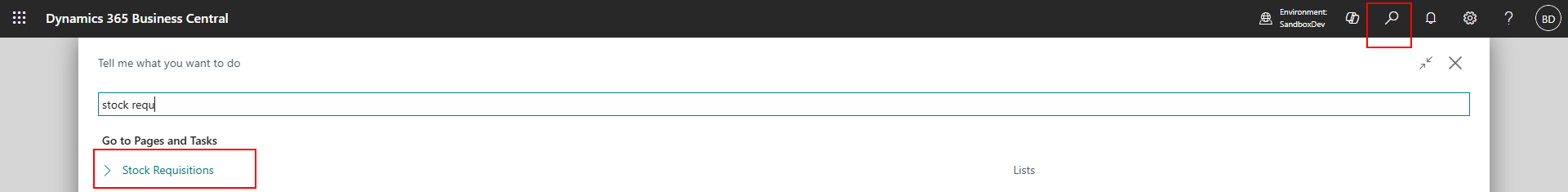 Follow these steps to create and process a stock requisition in Microsoft Dynamics 365 Business Central.