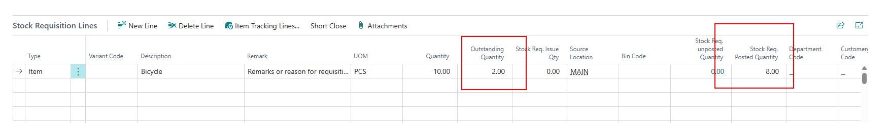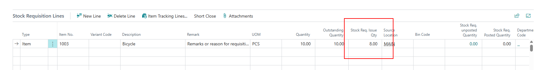 | 4 | Stock Requisition Remark | Comments or remarks from the header come automatically onto the line. |
