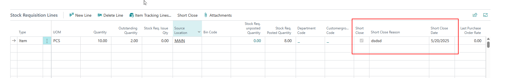 If the requisition is no longer required, or the remaining quantity is not to be issued, we can Short Close the requisition, by entering the remarks in Short Clkose Reason (which is mandatory).