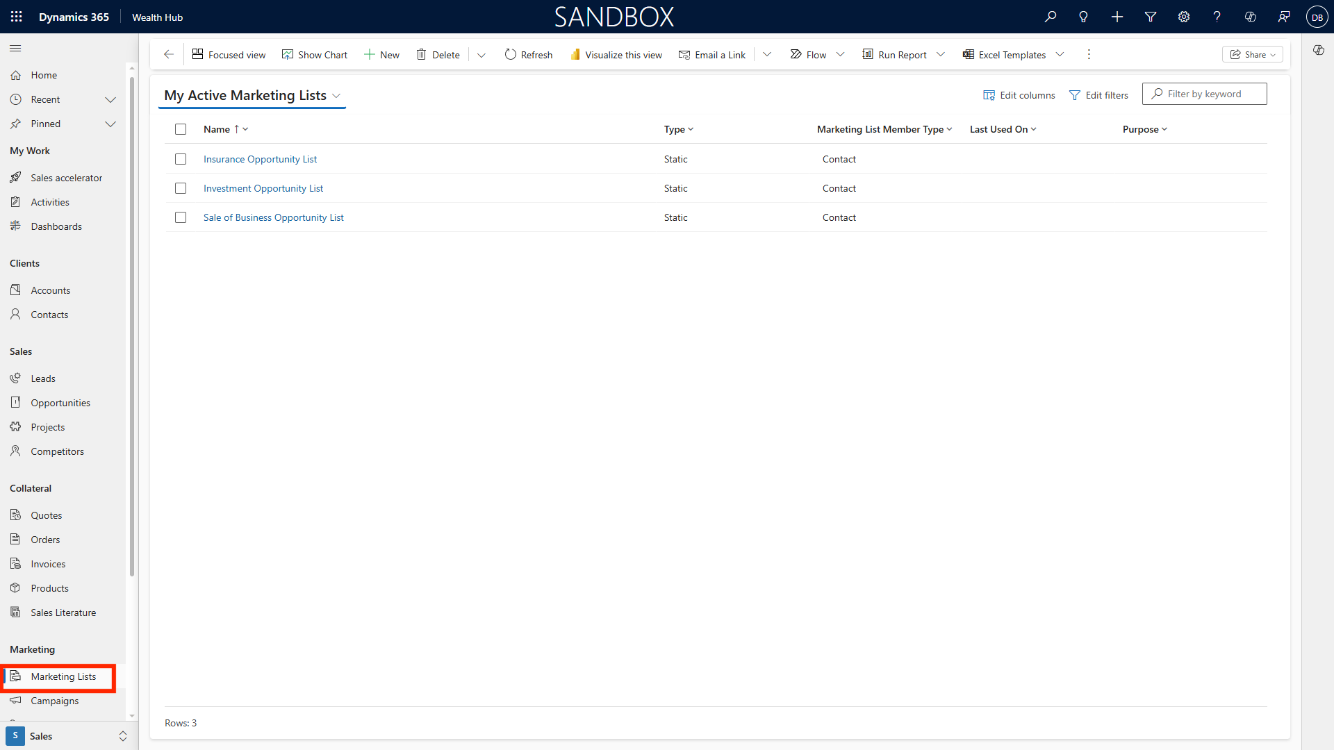 Navigate to Marketing Lists from the site map.