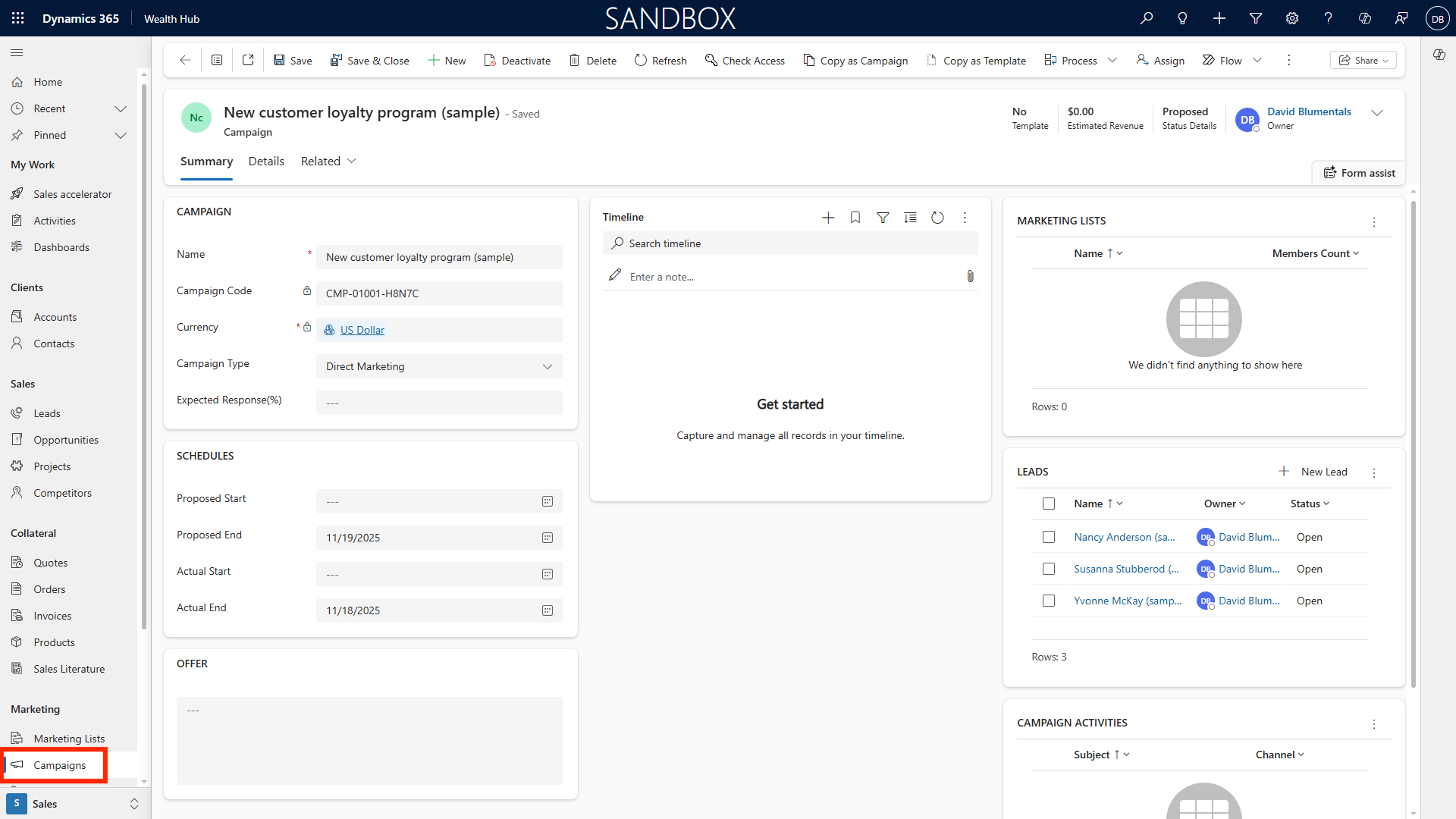 Monitor campaign progress and response directly within Dynamics 365.